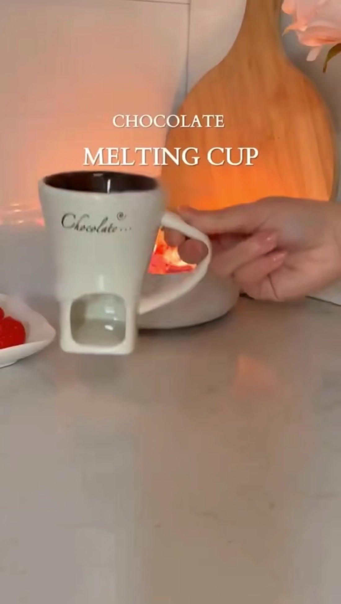 La tasse est équipée d’un petit compartiment permettant de placer une bougie chauffe-plat. Une fois allumée, elle chauffe doucement le fond de la tasse pour garder votre chocolat chaud ou faire fondre des morceaux de chocolat.